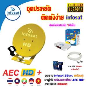 - อ่านรีวิว ชุดจานดาวเทียม INFOSAT 35CM. ตั้งพื้น + กล่องดาวเทียม AEC HD+ พร้อมสาย RG6 30เมตร (เลือกสีจานได้ตามชอบ)