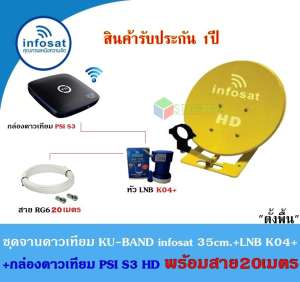 - อ่านรีวิว ชุดจานดาวเทียม Infosat KU-BAND 35cm.(ตั้งพื้น)+กล่องดาวเทียม PSI S3 HD พร้อมสาย20เมตร(เลือกสีจานได้)
