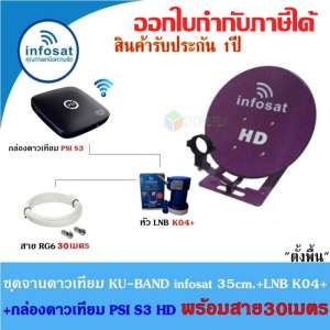 Product Details ชุดจานดาวเทียม Infosat KU-BAND 35cm.(ตั้งพื้น)+กล่องดาวเทียม PSI S3 HD พร้อมสาย30เมตร(เลือกสีจานได้)