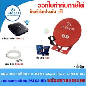 - - ซื้อ ชุดจานดาวเทียม Infosat KU-BAND 35cm.(ตั้งพื้น)+กล่องดาวเทียม PSI S3 HD พร้อมสาย50เมตร(เลือกสีจานได้)