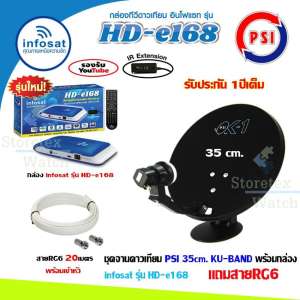 - ราคา ชุดจานดาวเทียม PSI OK-1 35cm.+ กล่อง infosat รุ่น HD-e168 พร้อมสาย20เมตร (เลือกสีกล่องได้)