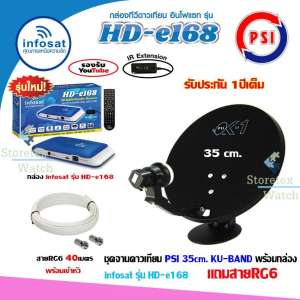 ชุดจานดาวเทียม PSI OK-1 35cm.+ กล่อง infosat รุ่น HD-e168 พร้อมสาย40เมตร (เลือกสีกล่องได้) ลดราคา สินค้าคุณภาพ ในราคาไม่แพง อย่างที่คุณคิด