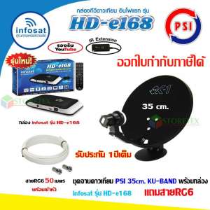 Product Details ชุดจานดาวเทียม PSI OK-1 35cm.+ กล่อง infosat รุ่น HD-e168 พร้อมสาย50เมตร (เลือกสีกล่องได้)