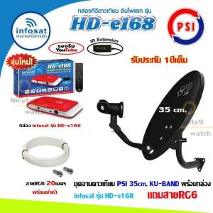 - ชื่อสินค้า ชุดจานดาวเทียม PSI OKD35cm.+ กล่องinfosat รุ่นHD-e168 พร้อมสาย20เมตร (เลือกสีกล่องได้)