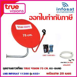สั่งซื้อ ชุดจานดาวเทียม TRUE VISION 75CM. KU-BAND+LNB INFOSAT 11300 รุ่น K03+ 1จุด พร้อมสาย 20 เมตร หรือเช็คราคาโปรโมชั่นล่าสุด..คลิกเลย