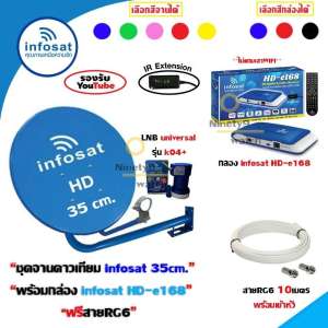 - - ราคา ชุดจานดาวเทียม infosat 35cm.(ยึดผนัง) พร้อมกล่อง infosat รุ่น HD-e168 ฟรีสายตามชุด (เลือกสีกล่อง,สีจานได้) รบกวนทักแชท