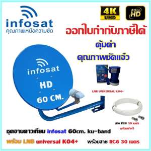 ชุดจานดาวเทียม INFOSAT 60CM. + LNB UNIVERSAL K04+ พร้อมสาย 30เมตร