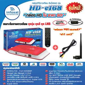 - ชุดกล่องดาวเทียม infosat รุ่น HD-e168 + เสา WIFI infosat พร้อมสายAV เข้า1 ออก3 (เลือกสีกล่องได้ตามชุด) เปรียบเทียบราคากับร้านอื่นๆ