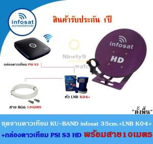 - ชื่อสินค้า ชุดจานดาวเทียม Infosat KU-BAND 35cm.(ตั้งพื้น)+กล่องดาวเทียม PSI S3 HD พร้อมสาย10เมตร(เลือกสีจานได้)