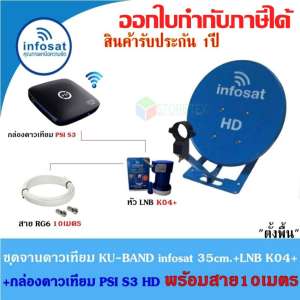 - ราคา ชุดจานดาวเทียม Infosat KU-BAND 35cm.(ตั้งพื้น)+กล่องดาวเทียม PSI S3 HD พร้อมสาย10เมตร(เลือกสีจานได้)