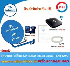 ราคาโปรโมชั่น!! ชุดจานดาวเทียม Infosat KU-BAND 35cm.(ยึดผนัง)+กล่องดาวเทียม PSI S3 HD พร้อมสาย40เมตร(เลือกสีจานได้) คุ้มไปเลยสุดๆ