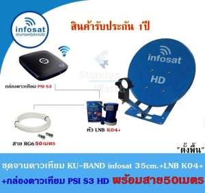 ราคาโปรโมชั่น!! ชุดจานดาวเทียม Infosat KU-BAND 35cm.(ยึดผนัง)+กล่องดาวเทียม PSI S3 HD พร้อมสาย50เมตร(เลือกสีจานได้) คุ้มไปเลยสุดๆ