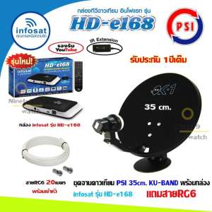 - ชื่อสินค้า ชุดจานดาวเทียม PSI OK-1 35cm.+ กล่อง infosat รุ่น HD-e168 พร้อมสาย20เมตร (เลือกสีกล่องได้)