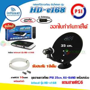 - ชื่อสินค้า ชุดจานดาวเทียม PSI OK-1 35cm.+ กล่อง infosat รุ่น HD-e168 พร้อมสาย20เมตร (เลือกสีกล่องได้)