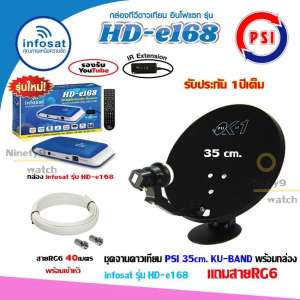 เช็คราคาและรายละเอียด ชุดจานดาวเทียม PSI OK-1 35cm.+ กล่อง infosat รุ่น HD-e168 พร้อมสาย40เมตร (เลือกสีกล่องได้)