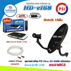ชุดจานดาวเทียม PSI OKD35cm.+ กล่องinfosat รุ่นHD-e168 พร้อมสาย20เมตร (เลือกสีกล่องได้) ราคาถูกและพิเศษ อาจจะมีเวลาที่จำกัด ก่อนที่ท่านจะซื้อ ชุดจานดาวเทียม PSI OKD35cm.+ กล่องinfosat รุ่นHD-e168 พร้อมสาย20เมตร (เลือกสีกล่องได้) อย่าลืมเช็ค สถานะของสินค้าก่อนว่ายังมีสินค้าอยู่ในสต๊อคหรือไม่ ด้วยการบริการที่ดีเยี่ยมของเราและความหลากหลายบริการการจัดส่งให้คุณเลือกได้ตามสะดวก และรีบรับข้อเสนอสุดพิเศษ จากทางเราก่อนที่สินค้าจะหมด