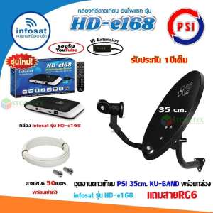 ราคาล่าสุด ชุดจานดาวเทียม PSI OKD35cm.+ กล่องinfosat รุ่นHD-e168 พร้อมสาย50เมตร (เลือกสีกล่องได้) ขายดีมากๆ
