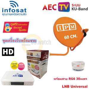 ราคาล่าสุด INFOSAT เครื่องรับสัญญาณดาวเทียม รุ่น AEC TV กล่องบอลโลก 2018 พร้อม IPM Ku-Band ชุดจานดาวเทียมไอพีเอ็ม 60 cm.พร้อมสาย 30 เมตร ขายดีมากๆ