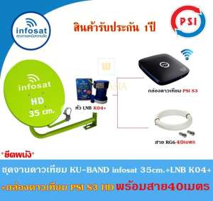 - ชุดจานดาวเทียม Infosat KU-BAND 35cm.(ยึดผนัง)+กล่องดาวเทียม PSI S3 HD พร้อมสาย40เมตร(เลือกสีจานได้) ซื้อที่ไหน