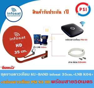 วิดีโอสำหรับ ชุดจานดาวเทียม Infosat KU-BAND 35cm.(ยึดผนัง)+กล่องดาวเทียม PSI S3 HD พร้อมสาย50เมตร(เลือกสีจานได้)