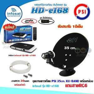 - ชื่อสินค้า ชุดจานดาวเทียม PSI OK-1 35cm.+ กล่อง infosat รุ่น HD-e168 พร้อมสาย30เมตร (เลือกสีกล่องได้)