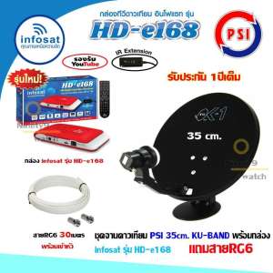 สั่งซื้อ ชุดจานดาวเทียม PSI OK-1 35cm.+ กล่อง infosat รุ่น HD-e168 พร้อมสาย30เมตร (เลือกสีกล่องได้) หรือเช็คราคาโปรโมชั่นล่าสุด..คลิกเลย