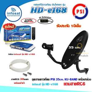 - ชื่อสินค้า ชุดจานดาวเทียม PSI OKD35cm.+ กล่องinfosat รุ่นHD-e168 พร้อมสาย30เมตร (เลือกสีกล่องได้)